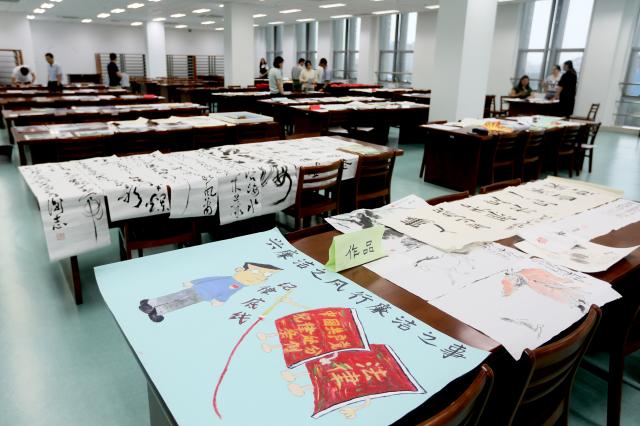 7月5日,学院第九届“扬廉洁之风 创和谐校园”艺术作品设计大赛作品评审在图书馆D505举行。