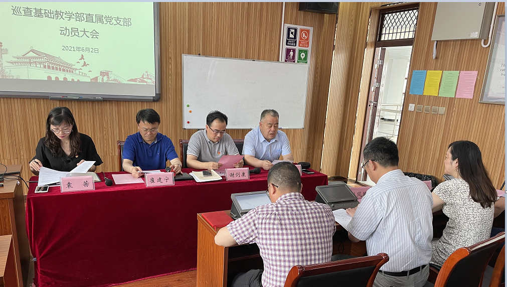 巡察组副组长谢剑康同志宣读了巡察通知书。巡察组定于2021年6月2日—6月9日赴基础教学部直属党支部开展巡察,主要通过听取汇报、列席会议、民主测评、个别谈话、调阅资料、召开座谈会、走访调研、受理信访等方式开展工作。