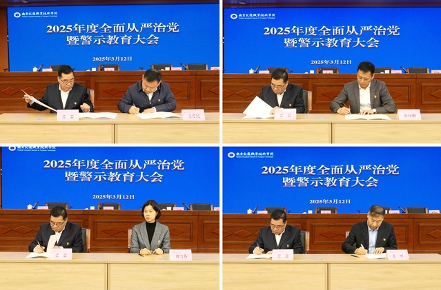 党委书记张毅作2025年全面从严治党工作报告,过去的一年,学院各级党组织和广大党员干部深入学习贯彻习近平总书记关于党的建设、党的自我革命的重要思想,扎实开展党纪学习教育,坚持和加强党的全面领导,落实管党治党政治责任,推动党的政治建设更加有力、思想引领更加深入、组织体系更加严密、严的氛围更加浓厚,全面从严治党取得新进展新成效。在深入分析学院全面从严治党面临的新要求、新形势、新问题的基础上,张毅强调,2025年是“十四五”规划收官之年和“十五五”谋划之年,是教育强国、教育强省建设规划纲要的开局推进之年,也是学院加快推动内涵式高质量发展,实现新提升、取得新突破的攻坚之年,深入推进党的自我革命意义重大、责任重大,必须深入学习贯彻习近平总书记关于党的建设的重要思想、关于党的自我革命的重要思想以及关于全面加强党的纪律建设的重要论述,坚持用改革精神和严的标准管党治党,坚定不移全面从严治党,重点要做到“六个持续用力”。一要在强化政治引领、筑牢绝对忠诚上持续用力;二要在抓好思想建设、深入凝心铸魂上持续用力;三要在夯实基层党建基础、建强干部人才队伍上持续用力;四要在深化纪律和作风建设、涵养新风正气上持续用力;五要在纵深推进反腐败斗争、建设清廉校园上持续用力;六要在守牢校园安全底线、维护校园稳定上持续用力。