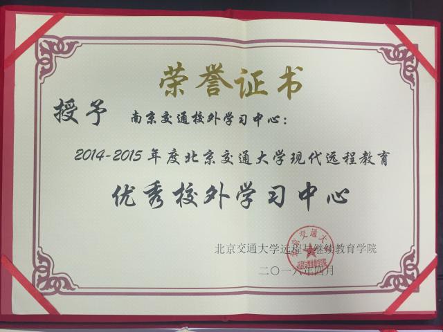 继2014年获得“北京交通大学现代远程教育优秀校外学习中心”之后(每两年一评),2016年4月我校从众多学习中心中脱颖而出,再次荣获该荣誉称号。学校自从2006年开办北京交通大学现代远程教育以来,以严格的教学管理制度,优质的教学质量,优异的教学成绩得到了社会的一致好评。