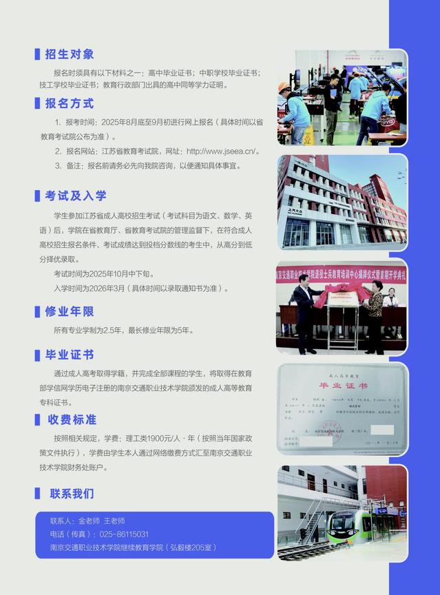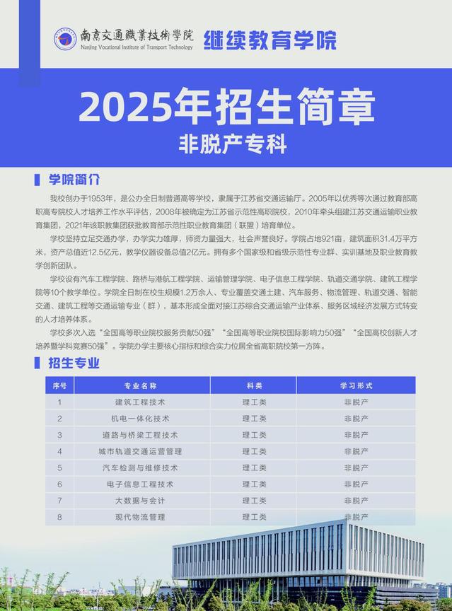 南京交通职业技术学院 2025年函授专科招生简章