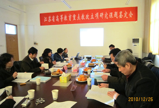 12月26日下午,学院会同省教育厅高教处组织专家对江苏省高等教育教改立项重点课题《高职院校工学结合背景下教学工作状态评价体系研究与实践》进行了鉴定评审。本次评审会邀请了江苏省高等教育学会秘书长周长春教授、江苏省教科院高教所所长宋旭峰教授、南京工业职业技术学院副院长卢兵、江苏海事职业技术学院高职所所长顾健、南京化工职业技术学院高教所所长朱方鸣研究员等五位专家担任评审委员,江苏省高等教育学会秘书长周长春教授担任评审组长。院长贾俐俐出席了评审会。科研产业处处长何玉宏、教务处处长杨益明及课题组相关人员参加了会议。