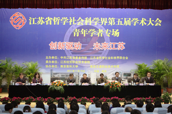此次学术会议的主题为“创新驱动,未来江苏”,分文史哲组、教艺组、经管组、法政社组共四个分会场开展了学术交流活动。大会安排了名家演讲和分组交流。南京师范大学、江苏省社会科学院、南京艺术学院等单位的专家和学者在大会上作了报告。