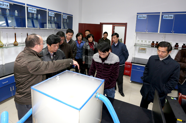 专家组首先在项目组的陪同下实地考察了中心及三个分中心硬件建设情况,观摩了中心气体实验室PM2.5净化实验、水体实验室油水分离实验及车辆节能减排研发分中心相关实验,充分肯定了实验效果。在随后召开的验收会上,院长张毅代表学院致辞。他首先对各位专家表示热烈欢迎,对各位专家和领导长期以来对学院的关心与厚爱表示衷心感谢。并表示将积极提交真实可靠的支撑材料,配合专家组做好项目验收工作。接着,项目组就中心建设情况和工作成果向专家组做了详细汇报。