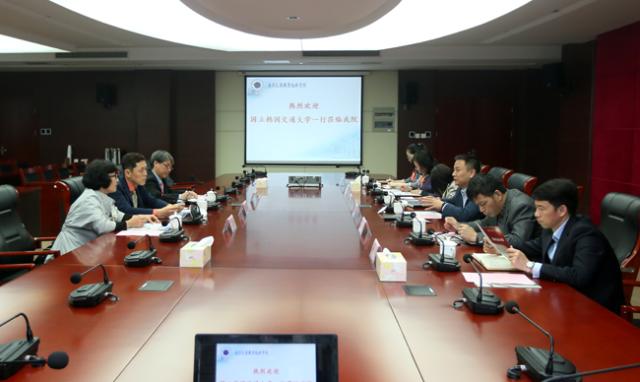 杨宁副院长对国立韩国交通大学一行来访表示热烈欢迎,向来宾介绍了学院立足交通行业开展专业建设、人才培养、国际合作等方面开展的工作,并希望以此次韩国来宾访问为契机,深化两校在学生文化交流研修、留学生项目、教师培训、专业建设等领域的合作交流。金京范处长介绍了国立韩国交通大学的专业设置、产学研合作发展策略、国际化办学等情况,希望两校合作开展多种形式的师生交流活动和学术交流活动,进一步促进中韩文化交流和发展。会谈后,两校正式签署并交换学术交流协议书,就开展交换生项目、留学生项目达成了共识。