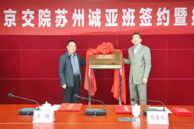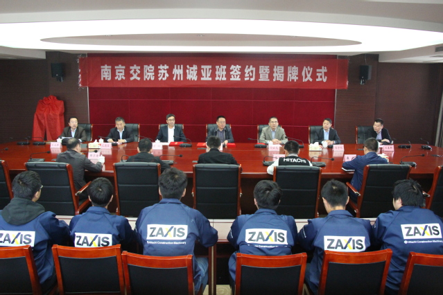10月24日上午,现代学徒制“南京交院苏州诚亚班”签约揭牌仪式在弘毅楼隆重举行。苏州诚亚工程机械有限公司苏卿总经理、服务部王春新部长,青岛诚日建机有限公司白云龙副总经理、隋文军主任,上海日立产品支援本部教育部孔德俊部长、技术部赵守刚部长,学院周传林副院长、轨道学院领导、老师及15名苏州诚亚准员工参加此次会议。会议由轨道交通学院米永胜院长主持。
