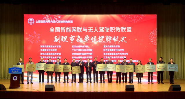 与会领导共同启动联盟成立仪式,并授发了联盟副理事长单位牌匾。大会报告了联盟筹备情况,审议并通过了联盟章程和联盟理事机构。联盟成员单位代表先后聆听了学术报告,联盟专业建设、技能竞赛、产教融合、创新创业工作组报告,参加了无人驾驶车辆试乘体验活动。