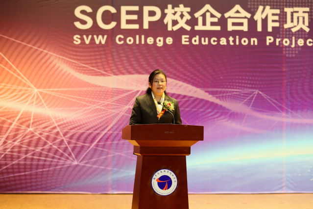 学院党委书记贾俐俐代表学院致答谢辞。她向莅临本次签约暨开业仪式的领导和嘉宾表示热烈欢迎,向长期以来关心支持学院发展的社会各界表示衷心感谢。贾书记指出,校企合作是高质量发展的必由路径,也是学院长期以来坚持的发展道路和积累的办学经验。她表示,此次与上汽大众汽车有限公司正式签署合作协议,是学院向校企深度合作迈出的坚实一步,学院将以此次合作为契机,着力开拓校企深度合作新领域、新途径,在人才培养、教学实践、资源共享、技术服务等方面加强合作与交流,取得硕果,实现学校、企业、学生多方共赢。