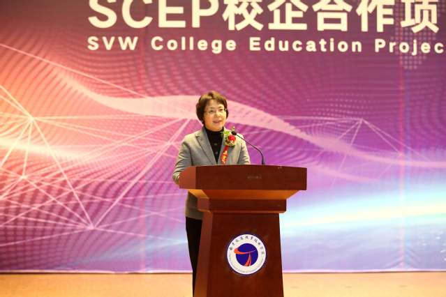省交通运输厅领导陈萍在活动致辞中指出,上汽大众和南京交院的此次合作,对进一步探索我省交通职业教育开展人才共育、资源共享、发展共赢的校企合作办学模式提供了很好的经验。她希望学院依托上汽大众优质资源,积极探索校企合作新模式,学习上汽大众的先进文化和先进管理经验,提升学院整体实力,实现产教融合向深度、广度发展,有力助推学院江苏省高水平职业院校建设。