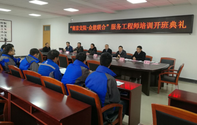 1月16日上午,众能联合数字技术有限公司服务工程师轮训工作正式启动。众能联合客户服务中心总监李勇、服务总监苏毅、培训副总监许井伟等领导,轨道交通学院院长米永胜、党总支副书记陈燕飞、工程机械教研室主任廉政、培训主讲教师刘成平等参加了开班典礼。典礼由陈燕飞副书记主持。