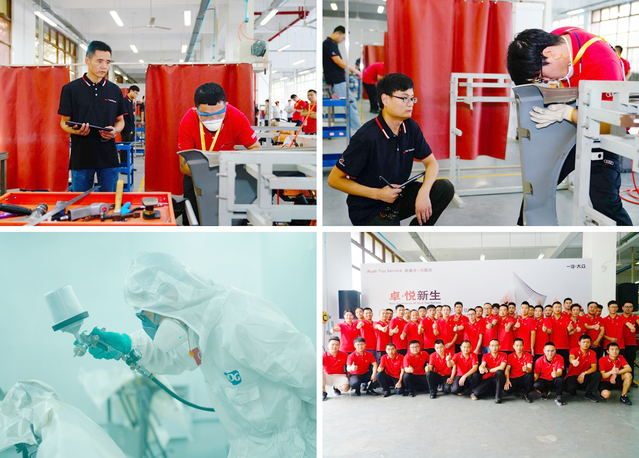 选手们依托先进的维修设备、绿色环保的PPG喷漆涂料、高效且严谨的质量把控,于细微处见功夫,生动展现了当代工匠的初心与匠心,诠释了“以心悦心”的奥迪卓悦服务理念。