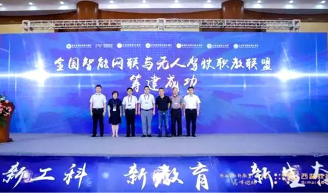 学院院长张毅,西普教育董事长王建,与南京工业职业技术学院、无锡科技职业学院、江苏信息职业技术学院、福建信息职业技术学院、山东交通职业学院、江苏海事职业技术学院等校领导,在仪式现场共同启动了“全国智能网联与无人驾驶职教联盟”筹建工作。