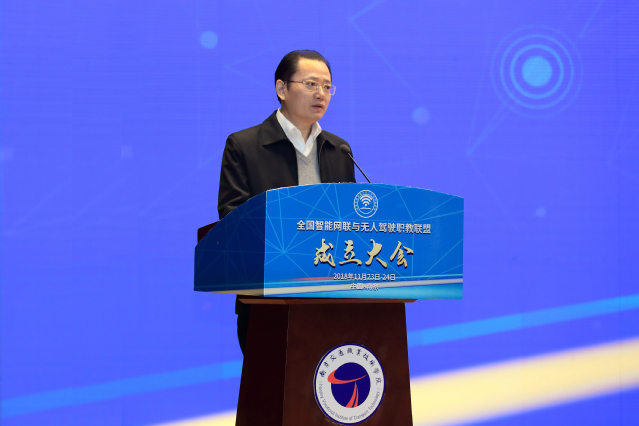 联盟理事长、南京交院院长张毅代表理事长单位郑重承诺:将站在服务和支撑“交通强国”建设的战略高度,自觉遵守《全国智能网联与无人驾驶职教联盟章程》,认真履行职责,与大家一道探索新形势下联盟工作的新思路、新方法,共同创新联盟服务的新机制、新举措,积极谋划,精心组织,扎实推进这项富有开创性的工作。希望联盟各成员单位要加强沟通协调,搭建协作平台;加强交流合作,促进互利共赢;加强行业统筹,实现共同发展。
