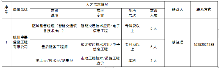 杭州中嘉建设工程有限公司人才需求