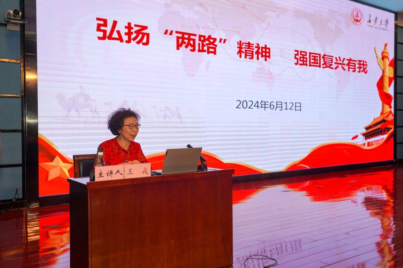 6月13日,长安大学“弘扬‘两路’精神 强国复兴有我”主题报告会在学校北校区北辰楼会议中心二层报告厅举行,邀请重庆交通大学马克思主义学院王戎教授作题为《川藏青藏“两路”精神及其时代价值》的报告。校党委副书记、副校长彪晓红出席报告会。报告会由党委宣传部常务副部长郗波主持。