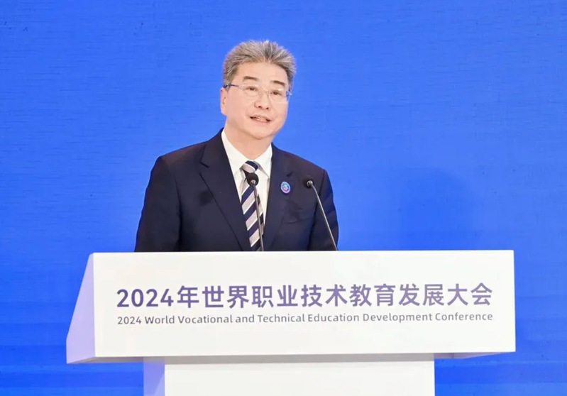 吴岩代表中国教育部向远道而来的各位中外嘉宾表示欢迎。他指出,建设教育强国,高等教育是龙头,基础教育是基点,职业教育上连高等教育,下接基础教育,是教育体系的腰,只有把这个腰锻造为铜腰,教育强国才能真正建立起来。职业教育肩负着培养更多高技能人才的光荣使命,尤为重要,尤为必要。他指出,职业教育和产教融合有三个必由之路。第一,产教融合是职业教育的必由之路,职业教育的发展需要职业院校和企业双向发力,相互成就,共生共长,实现“你中有我,我中有你”,由物理反应转变为化学反应。中国正在积极探索具有中国特色的产教融合模式,统筹推进“一体两翼”体系建设工作。第二,合作办学、合作育人、合作就业、合作发展等“四个合作”是产教融合的必由之路,实现产业、专业、就业三联动,让职业院校培养的学生企业用得上、离不开、信得过,让院校培养的人才真正受企业和用人单位欢迎。第三,“五金”建设是“四个合作”的必由之路。“四个合作”是方式,“五金”建设是内功,专业、教材、课程、师资、实践是直接关系职业教育、人才培养质量的关键要素。要推动专业动态调整,科学设计课程内容,优化升级教材形式,细分教师岗位能力,研究制定实习实训标准,建设产教融合实训基地,以教学关键要素的小切口,推动职业教育的大改革。他表示,中国愿分享职教经验,加强与各国职业教育交流,互学互鉴,共建共享,协同推动职业教育高质量的发展。