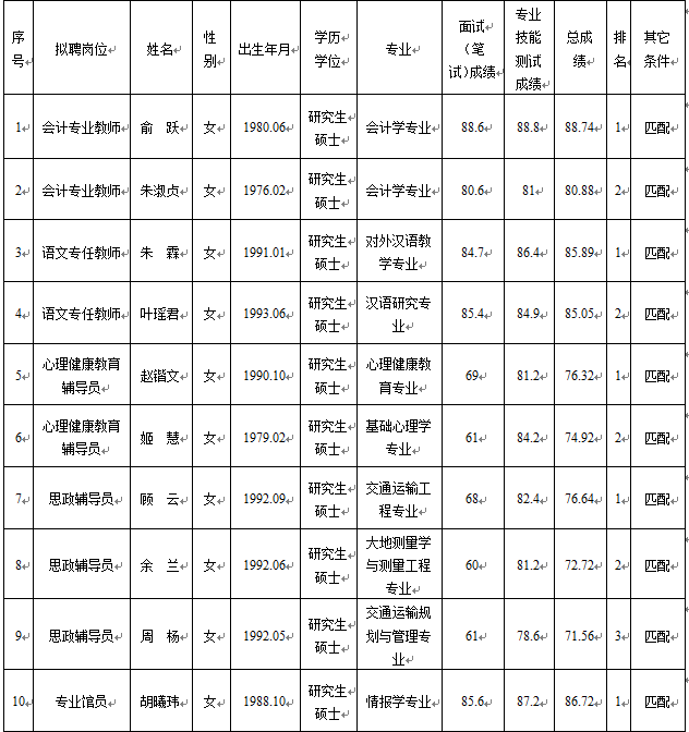 我单位于2016年11月5日公开招聘工作人员(非在编),经过笔试(面试)、试讲等环节考核、筛选,最终确定拟聘用10人。现将拟聘用人员基本情况公示如下: