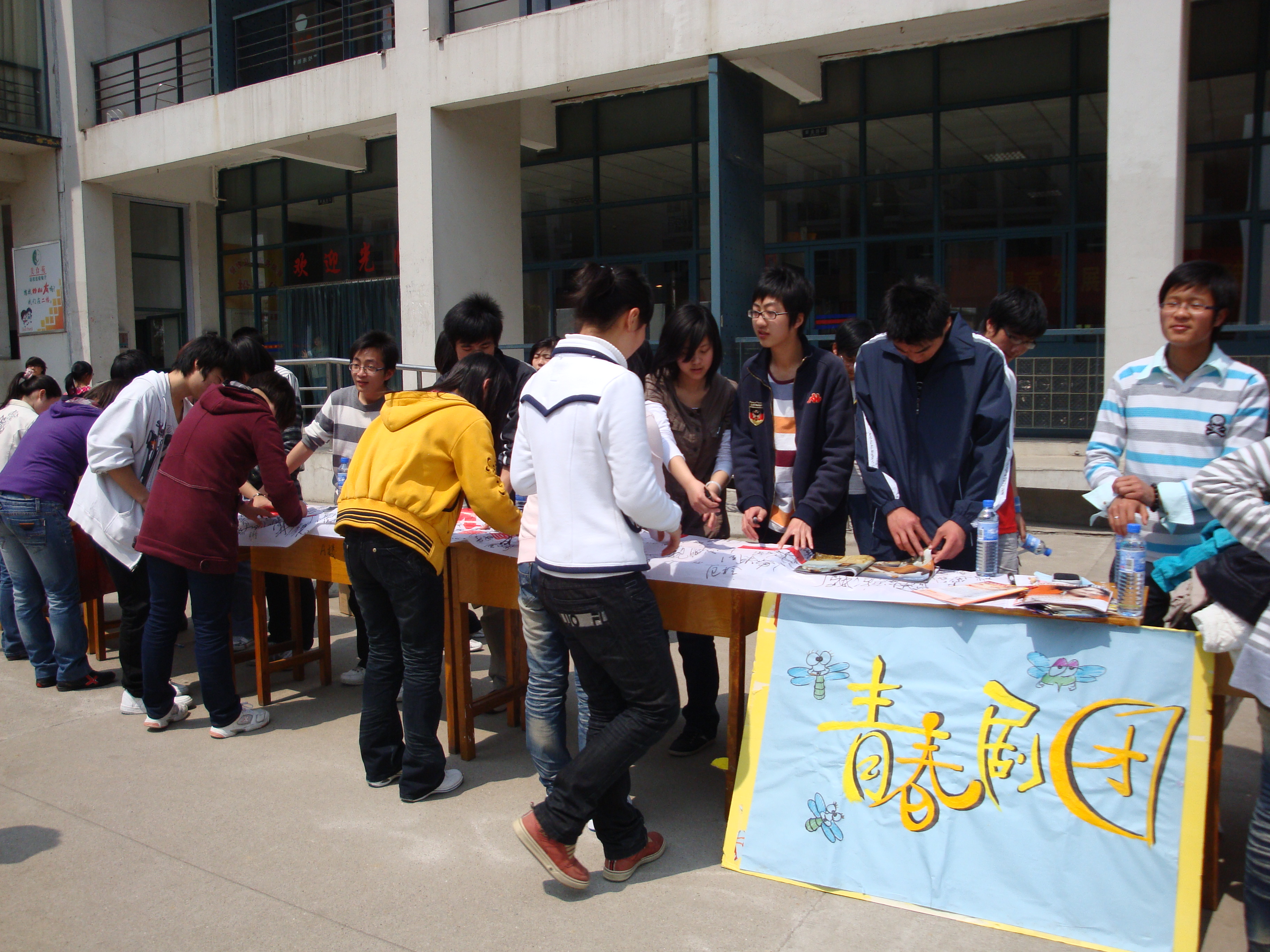 为创建绿色校园,由院社团外联部举办的“绿色校园行”活动在我院掀起了一场绿色风波。4月8日中午12:00,一句“从我做起,从身边做起,每天让自己更绿一点点”的口号飘荡在思源堂门口,引来不少同学前来签字,而后不断有同学将他们不穿的衣物和鞋子以及不用的被子被单等送来,也有同学将他们收集到的废品送来。此次活动锻炼了社员的能力,也唤起了同学们的环保意识。没有垃圾,只有绿色在身边,环保在校园。让我们携手共创绿色校园