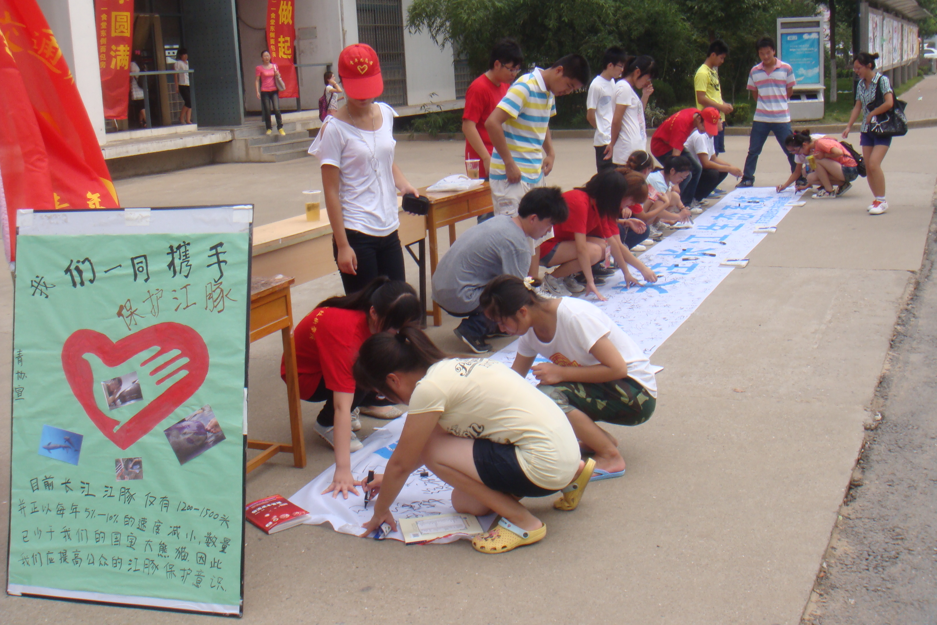 9月6号,一场由年志愿者协会主办,以“生命应存在而美丽,请留住江豚的微笑”为主题的保护江豚、千人签名活动在我院第一食堂门口拉开帷幕。