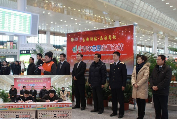 元月8日上午,南京铁路南站春运青年志愿者活动暨“博爱青年志愿者服务站”启动仪式在南站候车大厅举行。院党委副书记许正林出席。团委负责同志及学院近100名青年志愿者参加。启动仪式上,学院团委与南站团委正式签署了共建志愿基地协议书,志愿者们宣读了志愿誓词,正式拉开了春运志愿服务活动的序幕。