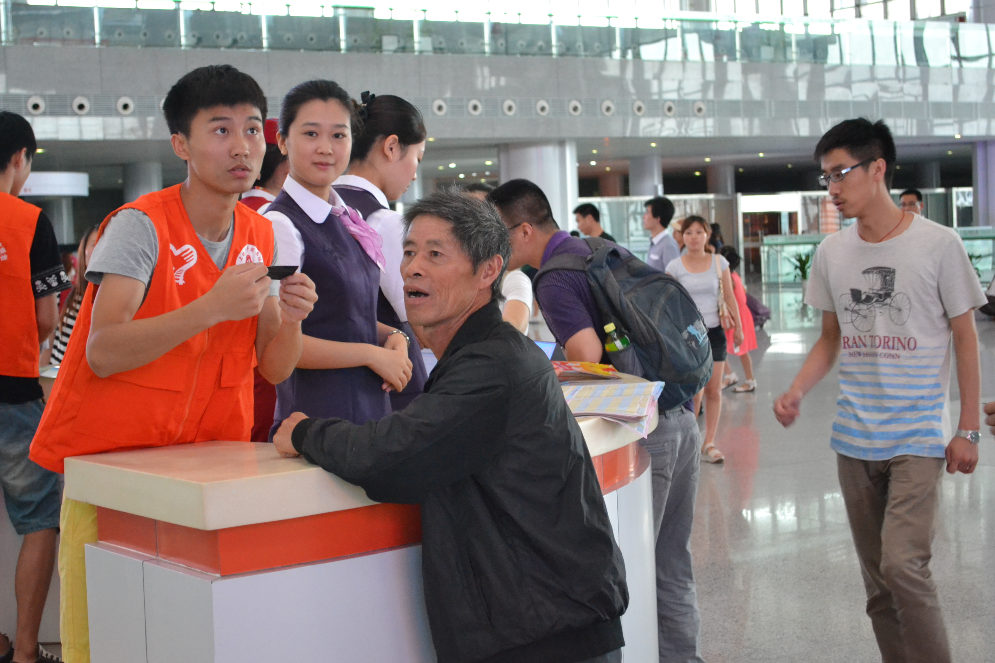 到达现场后,为了让志愿者们全面地为广大旅客提供热情的服务,南京南站负责人对志愿者们进行了相关知识培训,就站内流动人员大,场所环境较复杂的境况作了解说与指导,并进行了详密的工作安排。随后,志愿者们奔赴各自的岗位,身着“南京南站青年志愿者”红衣的身影穿梭在高铁站的每个角落。志愿者们在各自的岗位上,疏导人群、检票安检、解答出行班次、引路、搬运行李,为乘客们提供周到的服务。