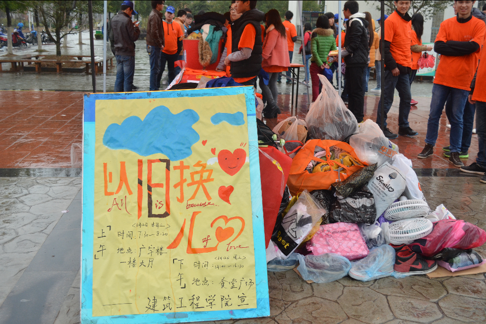 为了弘扬雷锋精神,倡导“奉献、友爱、互助、进步”的志愿精神,我院“迎客松”志愿者服务队于3月12日主办了“以旧换心,温暖同行”的献爱心捐赠活动。本次活动自开展以来受到学院师生的广泛关注,并且积极参与其中。从3月12日上午八点开始,就有很多学生到广宇楼的捐助点捐赠物品。下午一点开始大批学生到食堂广场的捐助点咨询、捐物,工作人员认真记录信息、归纳整理衣物,最初购置的5个大纸箱在活动中期就出现了紧缺。截止捐赠结束,共募捐衣服约300余件,鞋150余双以及书籍玩具等200余件。这些物品随后被送到学校爱心超市,实现它们全新的价值。本次活动物尽其用,给旧物赋予新的意义,使资源再次得到合理分配,让这个春天更加温暖。热心公益,帮助他人,我们与你一路同行!