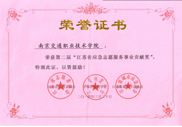 近日,江苏省志愿者协会、江苏省地震学会、江苏省城市应急协会联合下发了《关于表彰第二届江苏省优秀应急志愿者、优秀应急志愿服务组织的决定》,我校荣获“第二届江苏省应急志愿服务事业贡献奖”。