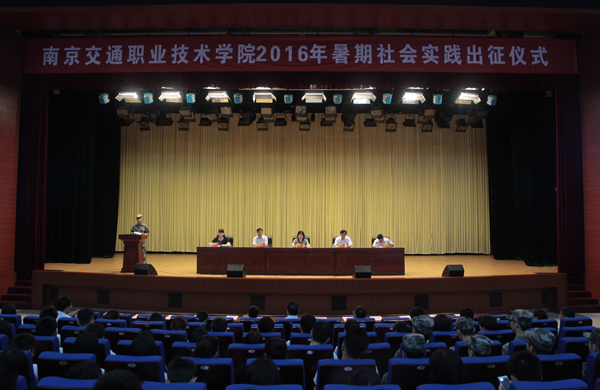 7月7日上午,学院2016年大学生暑期社会实践出征仪式在图书馆报告厅隆重举行。党委书记贾俐俐、副书记许正林出席仪式,团委、学生工作处及各院(系)党团总支负责同志、实践队员、指导教师参加了出征仪式。