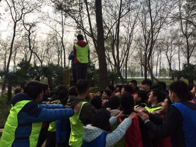 早上8点整,全体人员从学校东门出发前往玄武湖素质教育基地开展为期一天的素质拓展活动。李教练首先对本次活动以及全体学生表达出了热切地期望与祝福。接着彭书记做了动员讲话,他提醒全体成员要注意安全、全身心投入、团队协作、超越自我并迎接挑战。随后,全体人员合影。