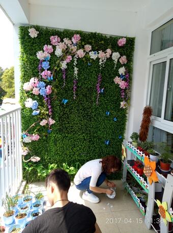 志愿服务进行了2个多小时的义务工作,组合拼装了仿真草坪,将草坪钉在墙上,从后院挖来泥土,将盆栽移植到里面。此次活动学生干部不仅得到了锻炼,而且为幼儿园的小朋友传播绿化环保的知识,参加志愿服务的学生干部纷纷表示此次活动对学生的成长非常有帮助。