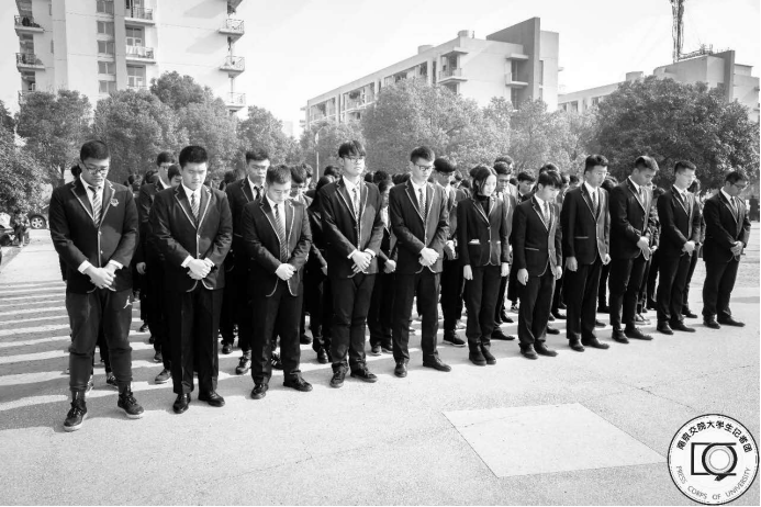2018年12月13日中午12点整,参与悼念活动的同学们在思源堂广场集合。12点30分,悼念活动正式开始。