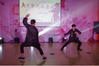 “卧似一张弓,站似一棵松”,有刚有柔、刚柔并济。练强身健体,习武术之魂,展现青春的气魄。