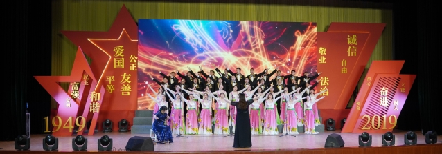 为热烈庆祝中华人民共和国70华诞,大力弘扬以爱国主义为核心的伟大民族精神,9月25日,学院庆祝新中国成立70周年“祖国颂 交院情”教职工红歌合唱比赛在图书馆报告厅隆重举办,全院16个党总支(直属党支部)组成的13支合唱队盛装登台,用嘹亮歌声唱响奋进凯歌。