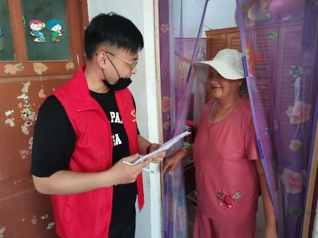 图为志愿者正在进行教育脱贫问卷调研