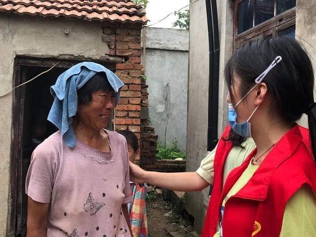 图为一名七旬奶奶独自带着一名孤儿,见我们志愿者去探望,流下了感动的泪水,我们志愿者连忙安慰