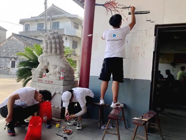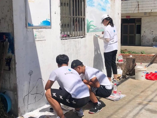 8月12日,团队实施了坡圩村文化宣传栏的微更新计划。通过实践观察,坡圩村的王氏宗祠地理位置突出,村民平时会在此聚集闲聊娱乐,原先仅仅是在一面墙体上直接张贴通知公告,团队决定将其定为微更新计划选址之一。另外,综合考虑村民聚集习惯以及公告栏旧址,又将村口处一家小卖部外墙列入微更新计划选址。在手绘公告栏的过程中,尽管天气炎热,实践团成员们仍然干劲十足,各司其职,保证每一处公告栏墙绘完美的呈现。成员们一致认为他们的作品,不仅是为美化乡村贡献微力,也在提醒人们美丽乡村建设需要人人参与,在务农的同时不忘对生活充满热爱。