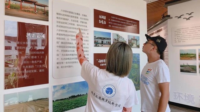 8月10日,阳光帮扶实践团深入当地示范项目村—礼诗圩村,观察当地如何讲好农村故事,推动经济发展与乡村振兴并行。礼诗圩村,坐落在溧阳城的东郊,现有农户260户,常住人口800人左右,村庄土地面积280亩,水面面积350亩。村内水系田园交错,“T型”礼诗贯穿中心,两岸居民房屋粉墙黛瓦错落有致,诗书礼仪氛围浓厚,是典型的江南水乡。在队长的带领下,队员们一行参观了礼诗圩村文化礼堂、农产品展示中心、共享农家厨房、焦尾琴艺术展示馆、荷花塘等,详细了解了该村推进美丽乡村建设总体规划以及在产业发展、生态保护等方面的喜人成果。