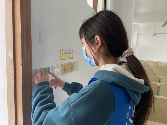 师生分批分组在宏博楼58间教室及办公室、10个卫生间和两台饮水机分别张贴了“节约用电”、“禁止吸烟”和“节约用水”环保宣传卡。倡导全体师生从小事做起,从我做起,共同营造文明、卫生的公共环境。