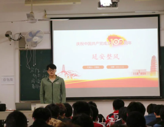4月21日下午,汽车工程学院第六期团学干部“学党史、讲党史”宣讲活动在致远楼301举办。1910122班梁爽同学和1910121班王晋伦同学分别向同学们讲述了大生产运动和延安整风的故事。党领导下取得的重大成果。