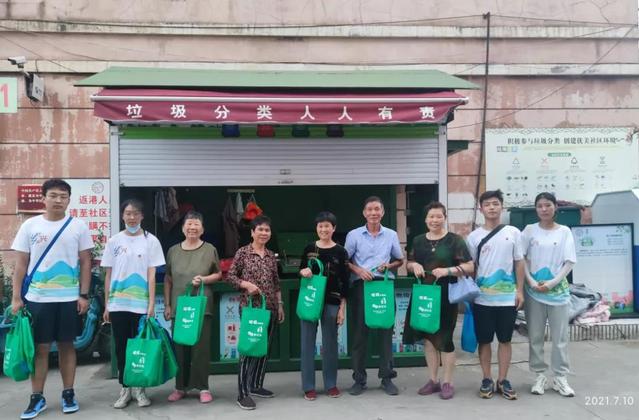 身体力行宣传垃圾分类,助力生态宜居。团队调研过程中向村民发放无纺布环保袋和环保垃圾袋,宣传环保理念。开展“垃圾不落地,港城更美丽”垃圾分类宣传活动。在分类垃圾点帮助前来投放垃圾的村民现场操作分类投放,重点介绍了分类垃圾桶的投放方法和注意事项,提高了村民践行垃圾分类的动力。