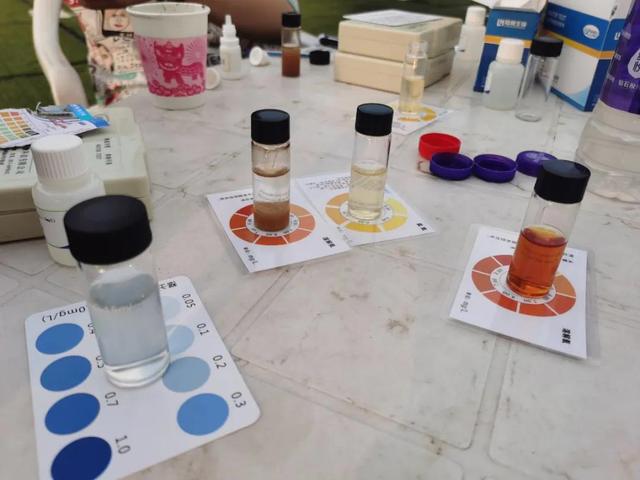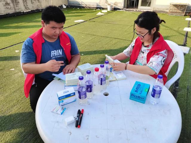 致远服务队全体队员在文化大院教室带领胡集镇的小朋友们进行水质调研检测。队员们带回来了淮沭河水以及稻田水,让小朋友对水质的浑浊度、气味进行分类汇总。张坤建同学带领小朋友进行水质的PH值检测,王士伟同学带领进行水里面含磷情况,通过颜色显示度进行数据分析。刘秋莉同学带领小朋友们进行溶解氧的检测,通过溶解物质的颜色对比进行分类。最后统计各个水质的数据。