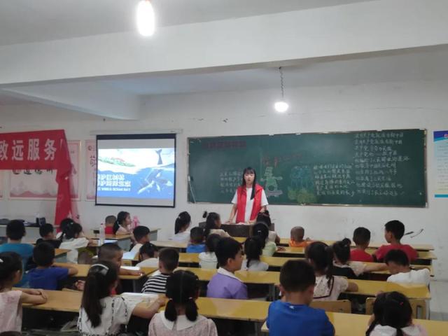 致远服务队队员江涵同学在文化大院教室给胡集镇的小朋友分享了主题为“蓝色海洋”的环境保护教育课程。环境保护是指人类为解决现实的或潜在的环境问题,协调人类与环境的关系,保障经济社会的持续发展而采取的各种行动的总称。保护环境的方法和手段有工程技术的、行政管理的,也有法律的、经济的、宣传教育的等。江涵同学向各位小朋友展示了许多濒危保护动物,小朋友的目光锁定在了那些可爱的动物身上同时也发出了叹息:“为什么他们现在就剩那么一点了啊,不能不要伤害他们了吗?”天真的话语飘荡在空气当中,旁听的老师和队员们也感觉到“环境保护,我们任重道远”。