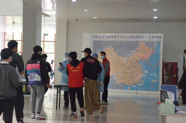 路桥与港航工程学院系党总支副书记彭涌涛和学工办邱宇老师全程在现场指导,及时安排各班进行核酸检测,摸排各班核酸检测信息,对有困难的同学给予最大的帮助,不漏掉每位同学,在所有志愿者与医护人员四个小时的不懈努力下14点完成了第二轮全员核酸检测。身体是累的、午饭是冷的、但心是暖的,老师和同学们在结束后围坐一起吃饭,没有任何怨言,只希望疫情早点结束,同学们可以平安的在一起生活。