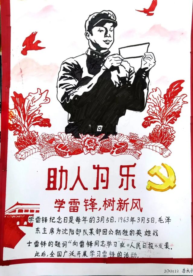 在春暖花开、万物复苏的季节里,人文艺术系团总支开展了学雷锋主题团日活动之“情系雷锋月,爱洒三月天”海报设计比赛。同学们用手中的画笔去追随雷锋的足迹、弘扬雷锋精神。