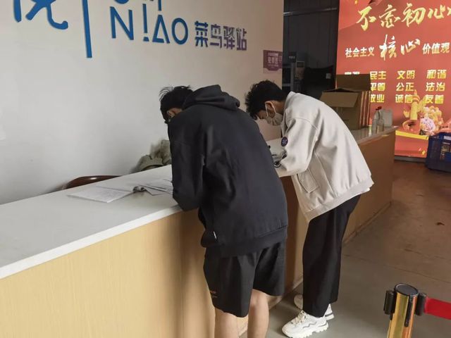 快递站的工作人员井井有条。他们在保障疫情防护的前提下为同学们提供快递服务,保障了同学们的日常生活。
