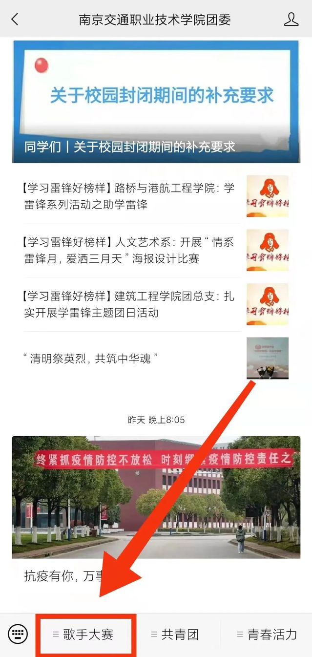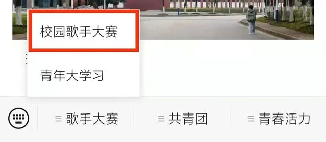 ②、关注团委公众号,进入主页面,点击“歌手大赛”菜单