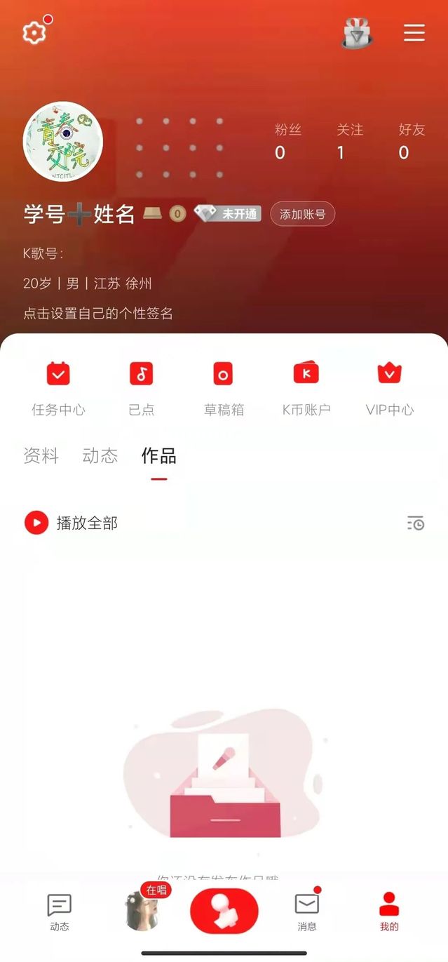 ①、在手机软件应用市场下载全民K歌软件,把昵称修改为“学号+姓名”,选手作品提交时间为4月11日—4月24日23:00。