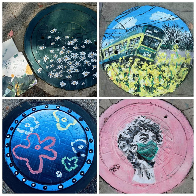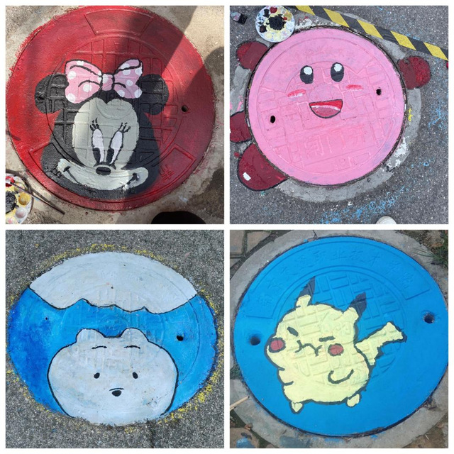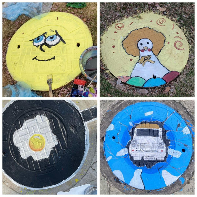 同学们将平时所学的专业课知识转化成实践手绘,充分发挥想象力和绘画能力,在井盖上作画。经过同学们的一番“装扮”,一个个井盖变成了“颜值高”、会“说话”的小精灵。一幅幅五彩斑斓、构思巧妙的井盖作品形成了一道道靓丽的风景线,不仅增添了校园的艺术气息,更是同学们对文明城市、文明校园建设的一片深情。