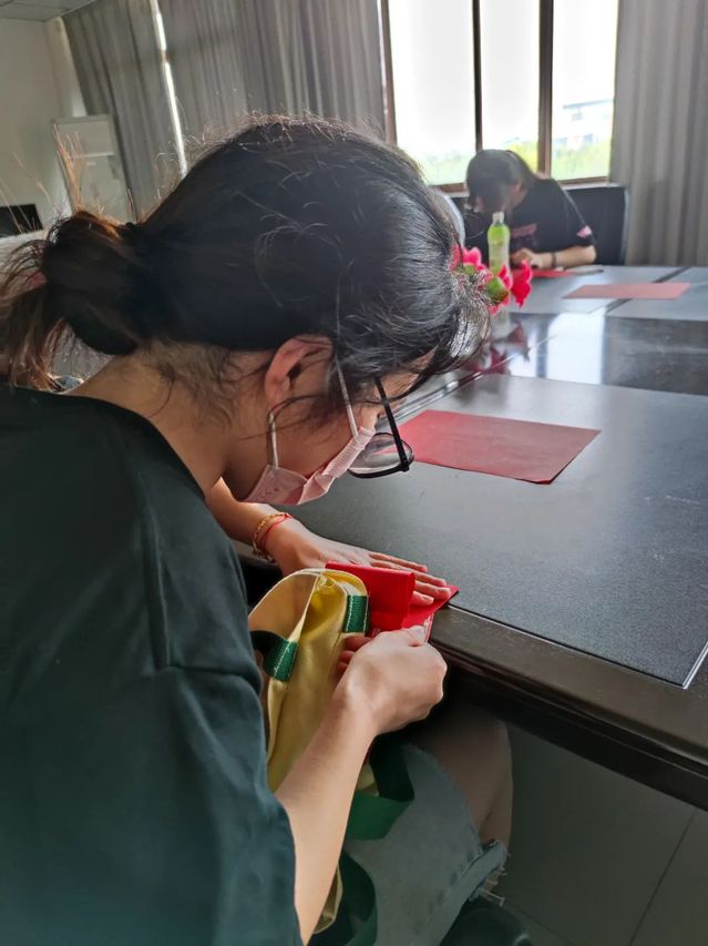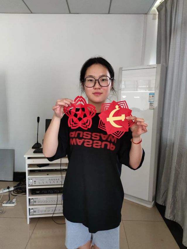 本次活动,由汽车营销2101班王滕腾、新能源2102班王璐担任剪纸老师,两位老师分别介绍了党旗、五角星的剪法,并现场演示剪纸过程。随后,学生们开始动手实践,积极参与,一步步精雕细琢,活动现场热情高涨,展现了新时代大学生朝气蓬勃、昂扬向上的精神风貌。