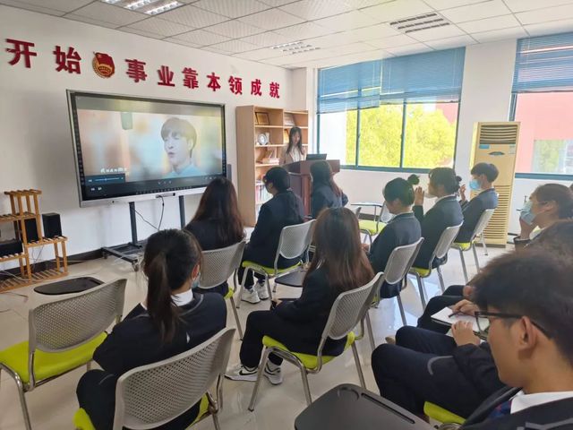 李老师带领青年团员们重温了五四运动时期风起云涌的历史,讲述了五四精神的时代意义,号召同学们向先辈学习,将个人理想与国家命运紧密联系起来。接着,李老师从“永远跟党走做合格共青团员”、“发挥团员的带头模范作用”、“做优秀团员迎接党的二十大”等几个方面做了讲述。